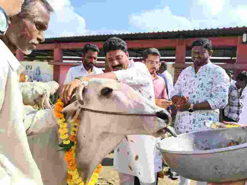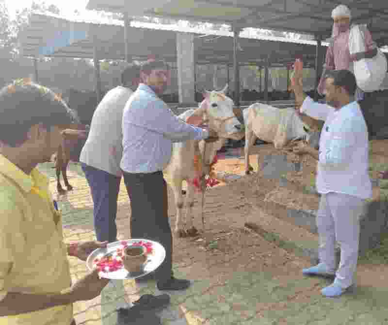 मध्य प्रदेश: अन्नपूर्णा गौशाला बोरगांव में भव्य गोवर्धन पूजा सम्पन्न, गौ माता की आराधना कर चारा-गुड़ खिलाकर मनाया पर्व