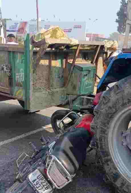 उत्तर प्रदेश: हाइवे पर ट्रैक्टर ट्राली से टकराई बाइक, दो युवक घायल, एक की हालत गंभीर