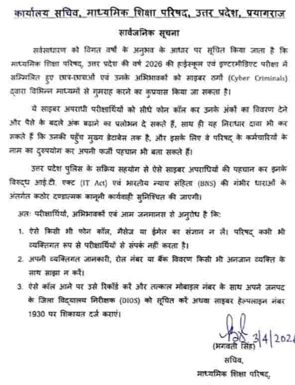 उत्तर प्रदेश: यूपी बोर्ड रिजल्ट से पहले अलर्ट साइबर ठगों से रहें सावधान
