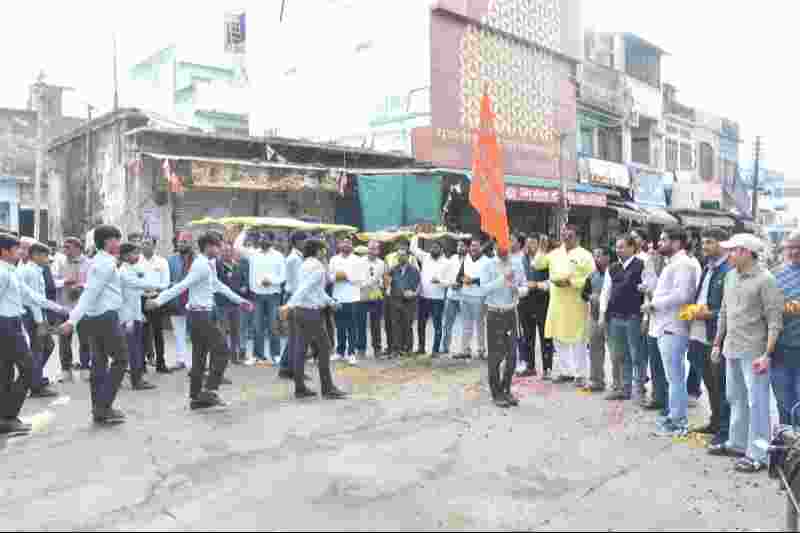 राजस्थान: भाजपा ने पथ संचलन पर छात्र-छात्राओं का पुष्प वर्षा कर किया अभिनंदन