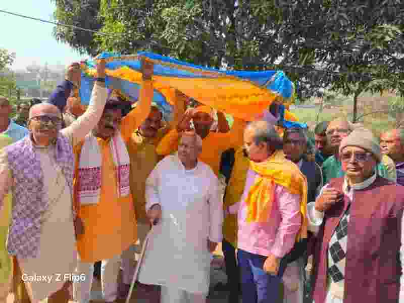 बिहार: पांडेयगंगौट मड़ही में बाबा की समाधि स्थल के गुंबद पर लगाया गया नया कलश