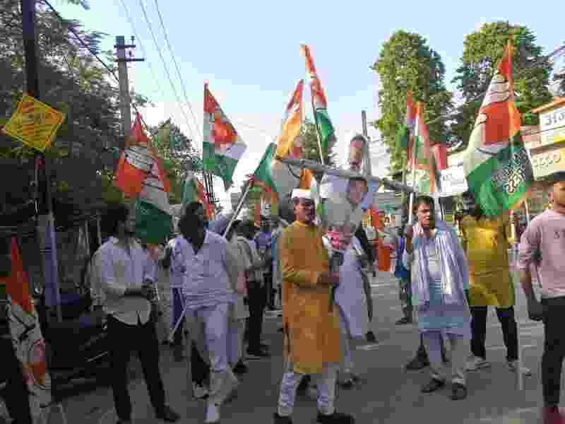 बिहार: नवादा में कांग्रेस का प्रदर्शन, असम CM के खिलाफ पुतला दहन