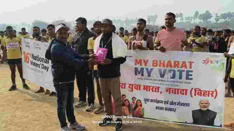 बिहार: मतदाता जागरूकता के लिए नवादा में पदयात्रा, 500 से अधिक युवाओं की रही भागीदारी
