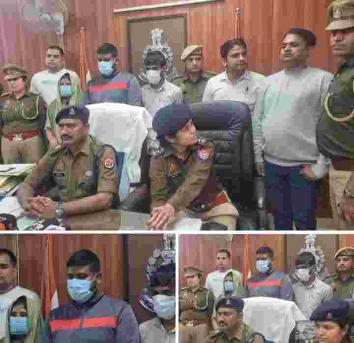 उत्तर प्रदेश: थाना दादरी पुलिस द्वारा हत्या की घटना का सफल अनावरण करते हुए 03 अभियुक्त (01 घायल) व 01 अभियुक्ता गिरफ्तार, कब्जे से घटना में प्रयुक्त 01 बाका (आलाकत्ल), अवैध शस्त्र व 01 मोटरसाइकिल बरामद।