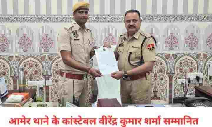 राजस्थान: आमेर फोर्ट में उत्कृष्ट सेवा देने पर पुलिसकर्मी वीरेंद्र शर्मा को किया गया सराहना