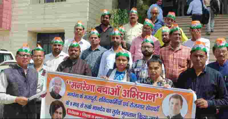 उत्तर प्रदेश: मनरेगा व संविदा कर्मियों के भुगतान में देरी पर कांग्रेस का प्रदर्शन, राज्यपाल के नाम सौंपा ज्ञापन