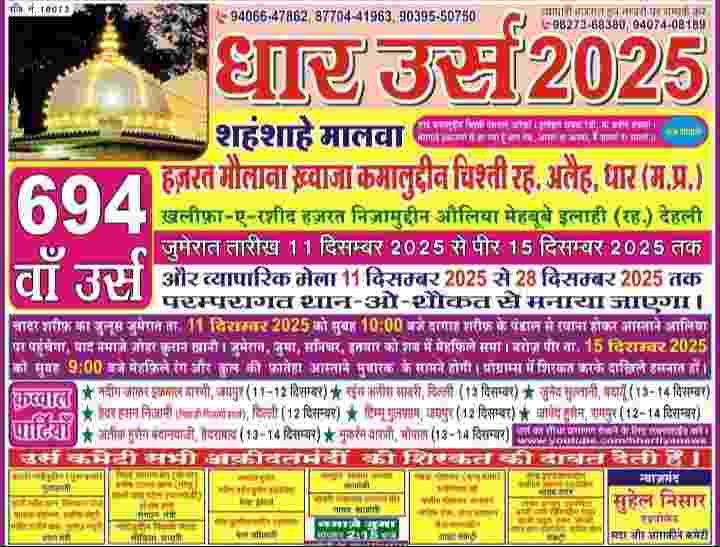 मध्य प्रदेश: धार में 11 दिसंबर से शुरू होगा बाबा कमाल का उर्स, देशभर के मशहूर कव्वाल पेश करेंगे नातिया कलाम