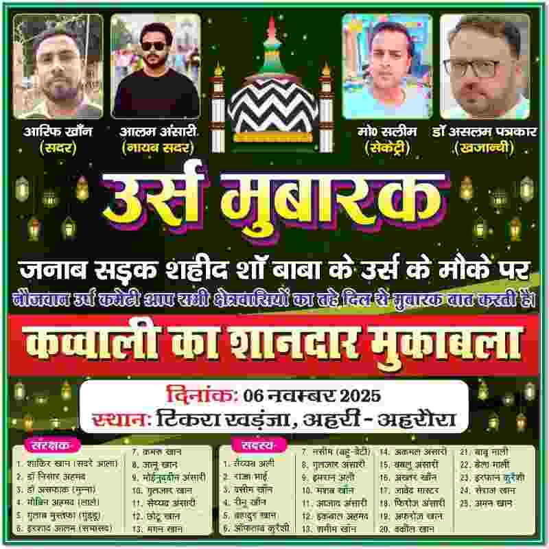 उत्तर प्रदेश: शाहिद बाबा का दो दिवसीय उर्स 5-6 नवंबर को धूमधाम से आयोजित