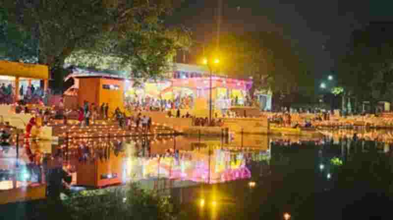 उत्तर प्रदेश: देव दीपावली पर दीपों से जगमगाया पोखरा साहूवाइन घाट, भजन-कीर्तन से गूंजा माहौल