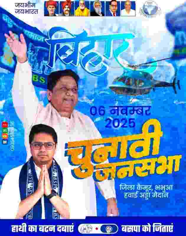 मध्य प्रदेश: बीएसपी प्रमुख बहन कुमारी मायावती का बिहार दौरा: कैमूर में चुनावी जनसभा