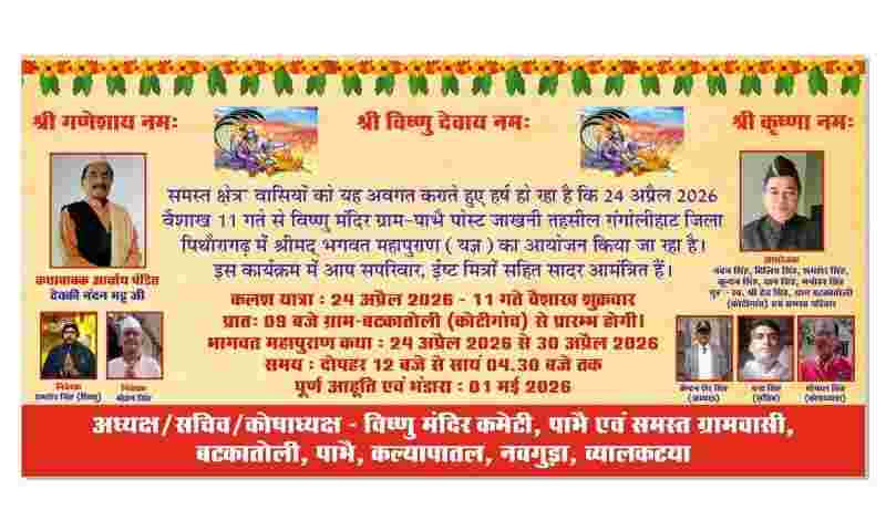 उत्तराखंड: पिथौरागढ़ में श्रीमद्भागवत महापुराण का भव्य आयोजन, 24 अप्रैल से गूंजेंगे भक्ति के स्वर